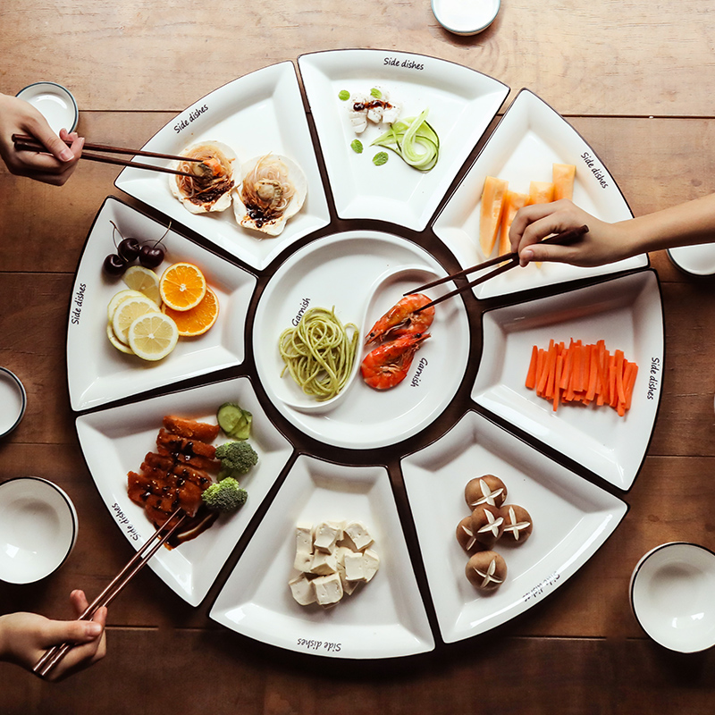 9-piece trapezoidal plate * 8 Gossip plate*1 9-piece trapezoidal plate * 8 8-inch soup bowl*1