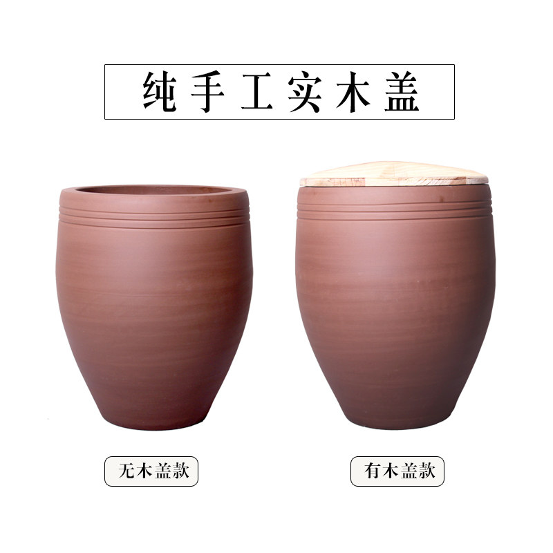 Thickened unglazed clay pottery 90 catties with wooden cover Thickened unglazed clay pottery 130 catties with wooden lid