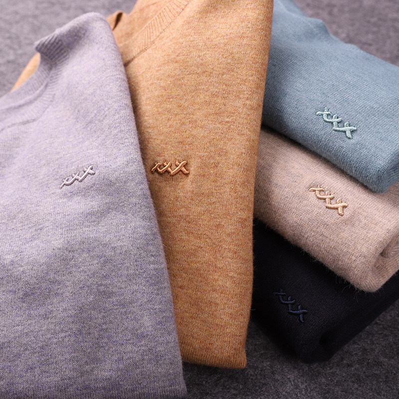 Autumn and winter men's crew neck pullover sweater from the island island base solid color sweater trend
