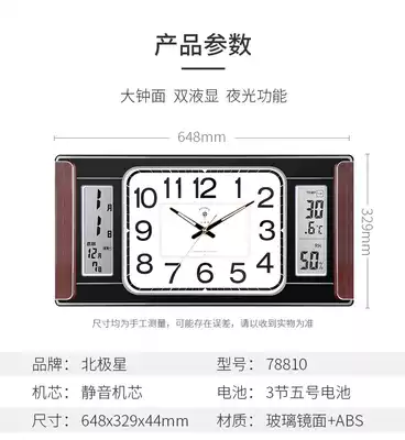Polaris oversized 20 inch home living room wall clock creative silent clock luminous clock calendar temperature and humidity