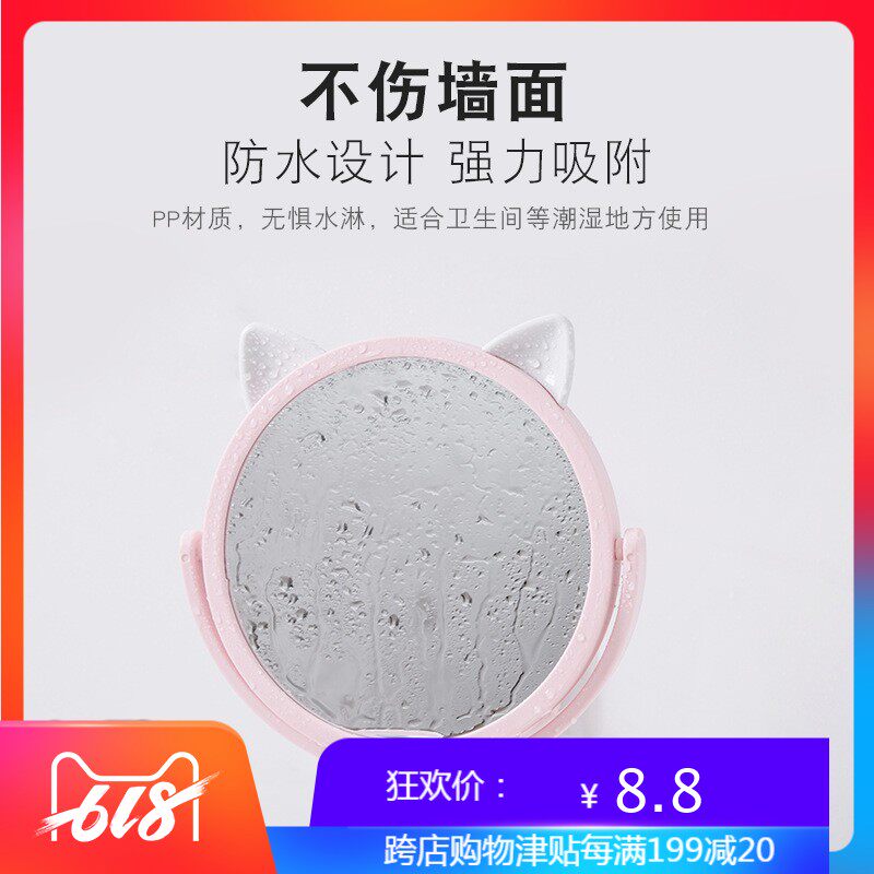 Bathroom round mirror hole-free wall hanging self-adhesive makeup mirror Powder room folding retractable round mirror Waterproof