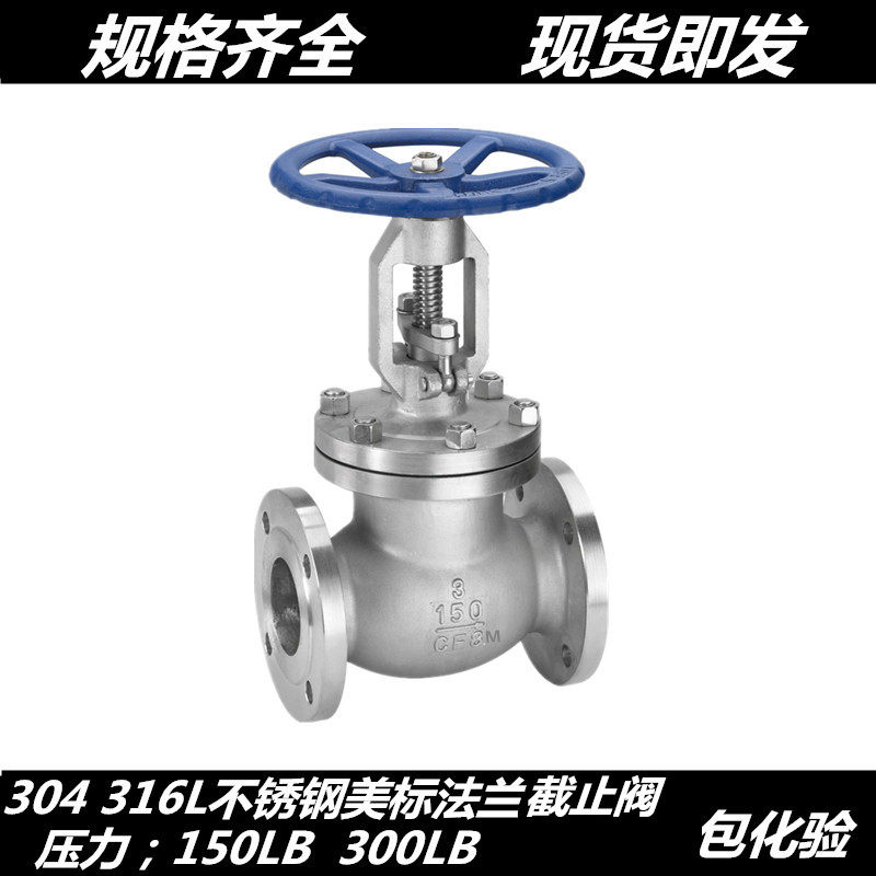 304 stainless steel American flange stop valve J41W-150LB steam flange stop valve 300LB DN50 65