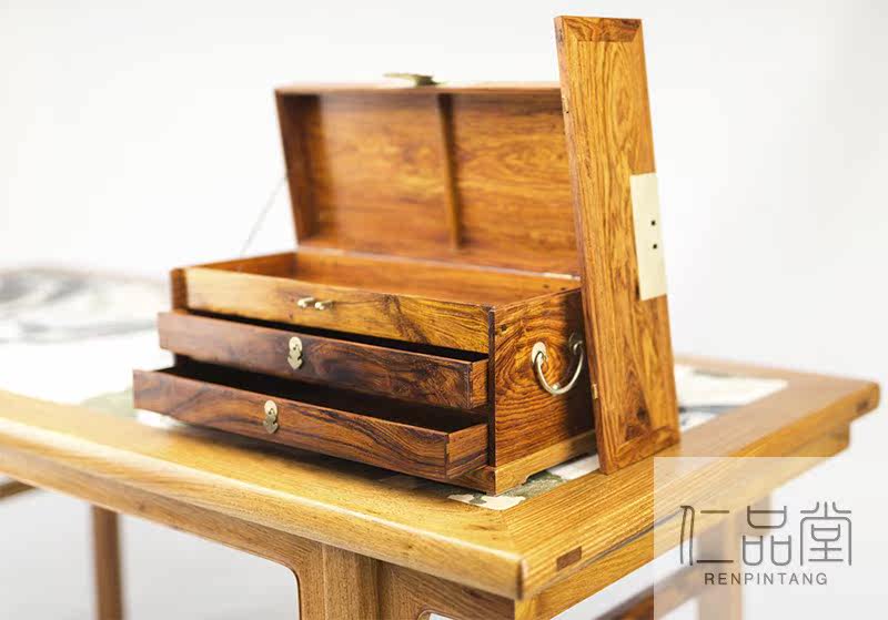 Authentic Hainan huanghuali whole single-board ghost-eye material Jiamutang style two-drawer stationery box Ming-style furniture