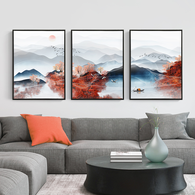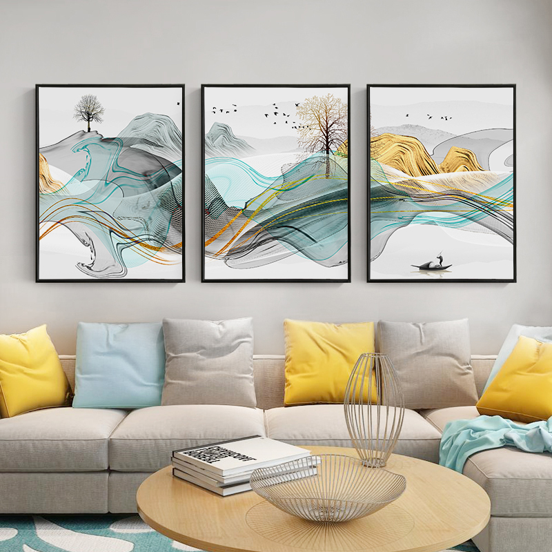 Living room decorative painting new Chinese sofa background wall landscape painting atmospheric lucky wall hanging painting modern minimalist mural
