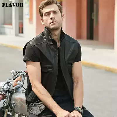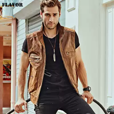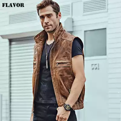 FLAVOR Flano 2019 autumn new leather leather men American casual leather vest stand collar vest