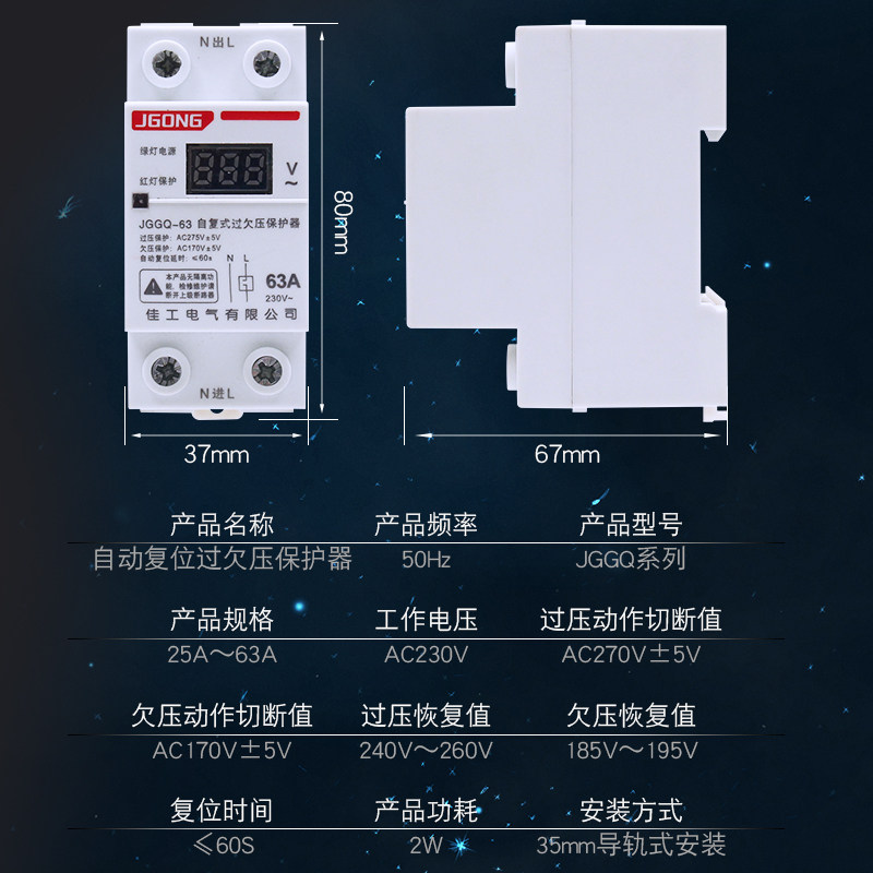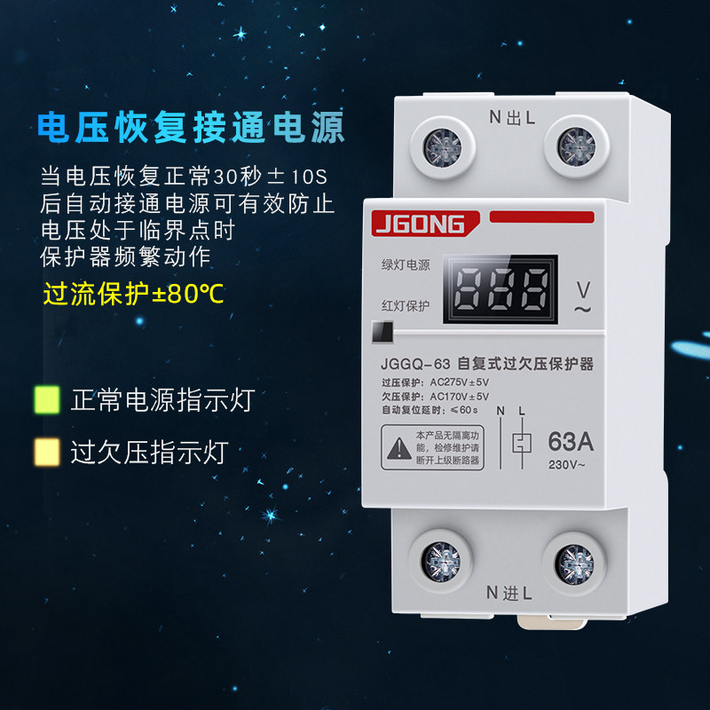 Number of display self-duplex undervoltage protector home 220V with lightning protection automatic reset time-lapse protection switch 63A
