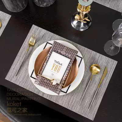 Dining table set 0440 silver gray bamboo placemats (real price) geometric 10 5quot black side flat plate (real price) 8 inch gold brown skin pattern plate (real price) retro gray silver handle brushed gold knife