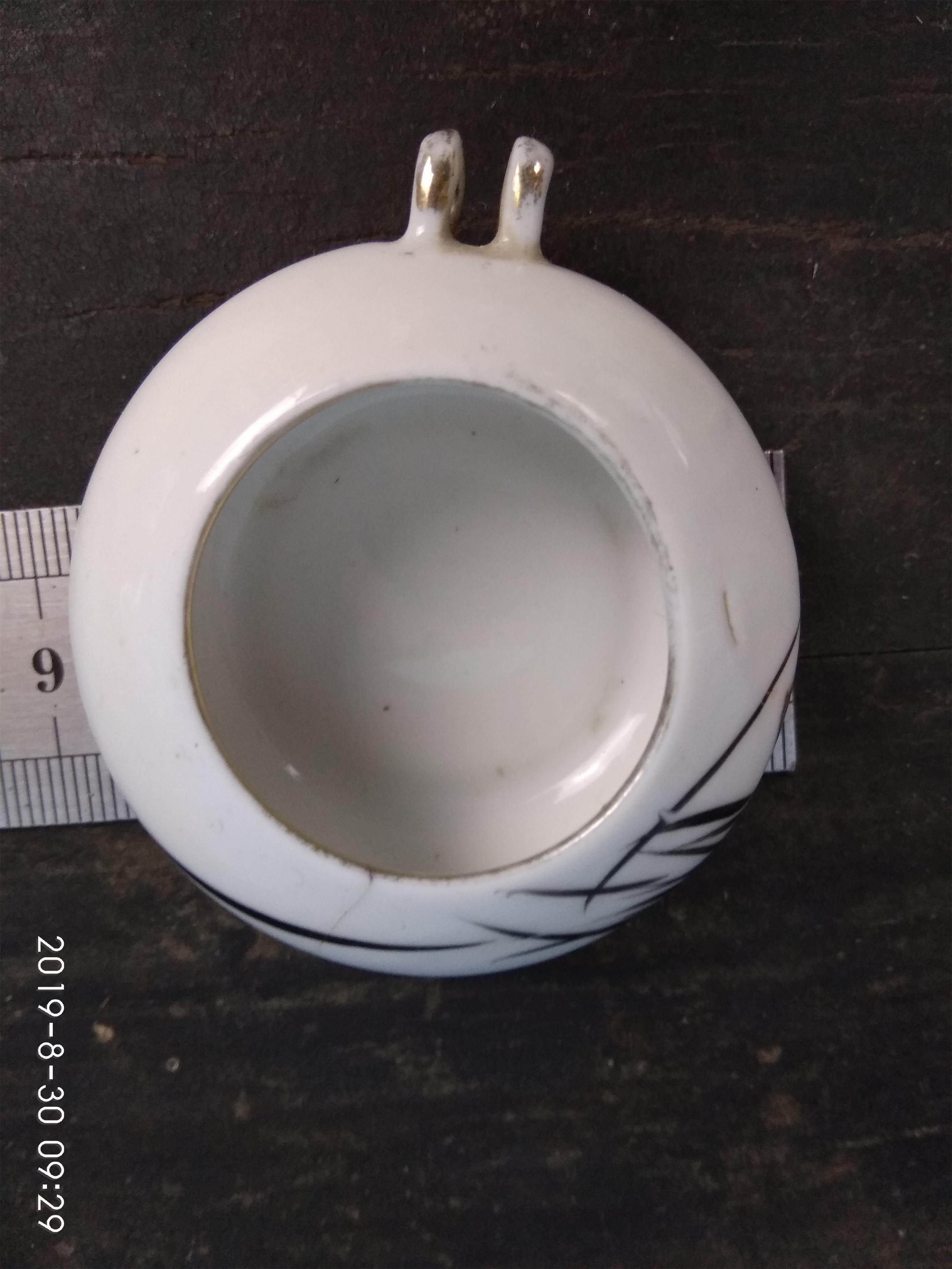 Cultural Revolution Jingdezhen Hand-painted ink orchid plot Flat Drum Bird-cage Bowl Bird Cage piece (with crack line at the mouth of the jar)