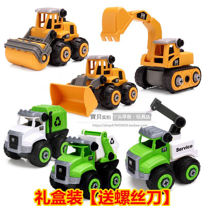 Children's engineering vehicle toy small garbage sanitation vehicle detachable screw disassembly group assembled car boy toy