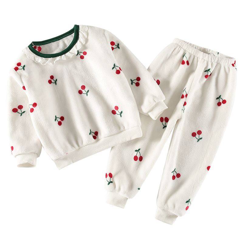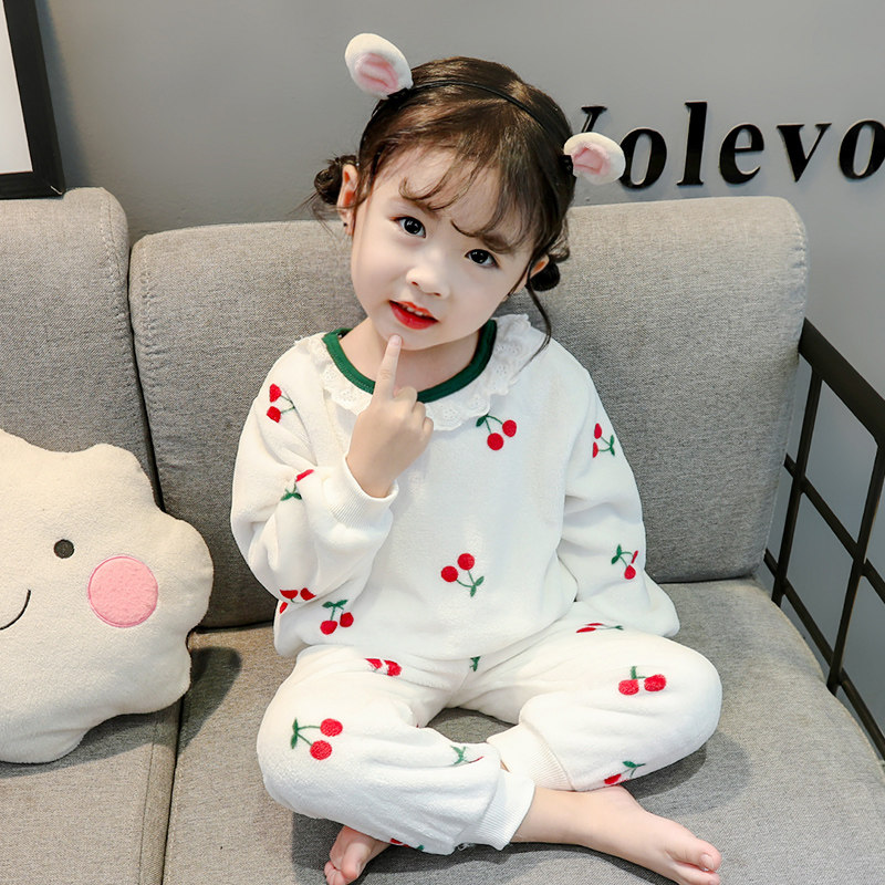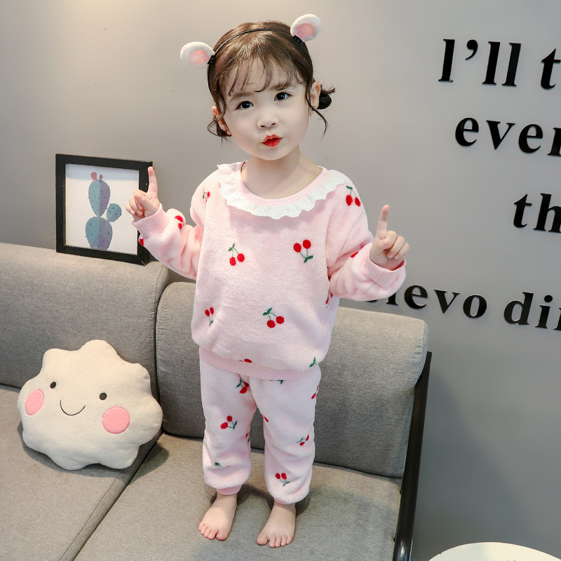Girls spring and autumn pajamas flannel children's autumn models female baby coral velvet children's princess cute home clothes autumn clothes