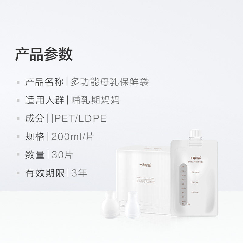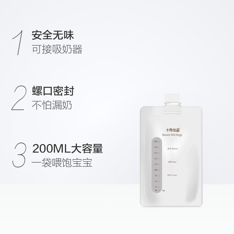 October Crystal multi-function milk storage bag can be connected to the breast pump Breast milk preservation bag 200ml storage bag 30 pieces