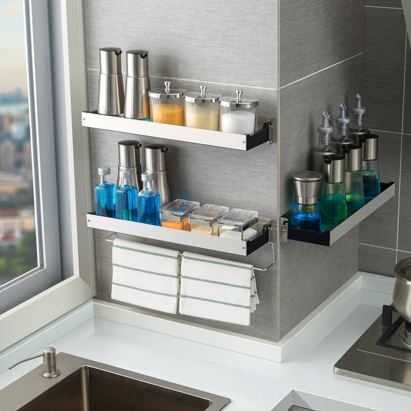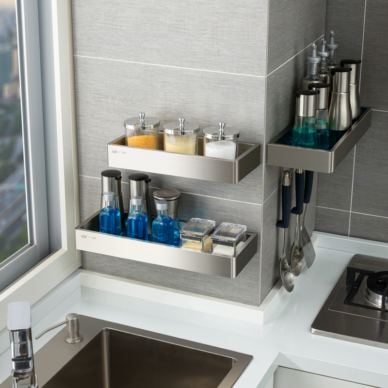 Eleven dimensions stainless steel kitchen condiment rack Seasoning rack Wall-mounted punch-free wall pylons storage rack