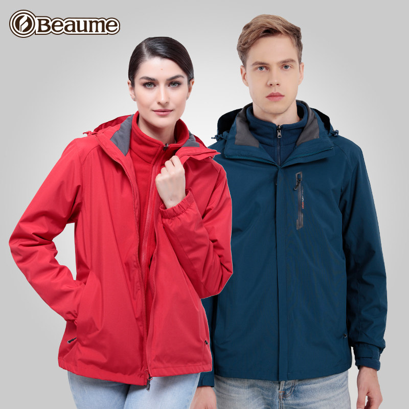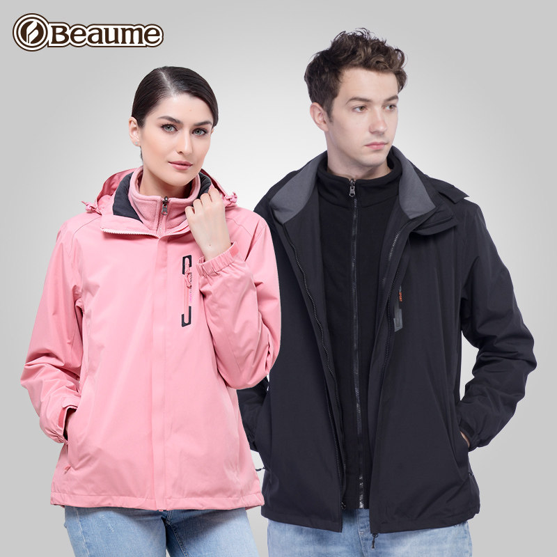Waterproof three-in-one stormtrooper Men's and women's detachable two-piece mountaineering suit warm jacket Beik Baomei beaume