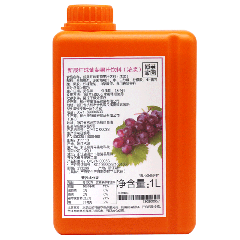 Red Pearl grape juice (fruit juice content ≥ 9 0%) green grape canned 850G water honey peach juice (fruit juice content ≥ 9 0%) green tangerine juice perfume lemon juice red pomegranate juice