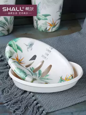 Shall Hill dressing room double drain soap box new Nordic style green plant soap box household double compartment