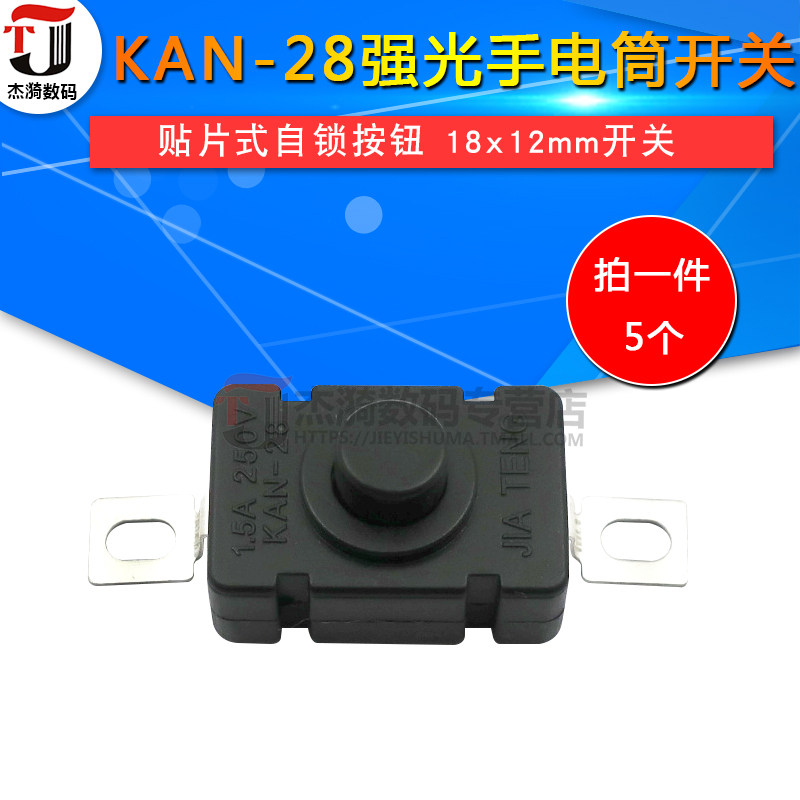 KAN-28 Intense Light Flashlight Switch 1 5A 250V Patch Type Self Lock Button 18x12 Switch Accessories 5
