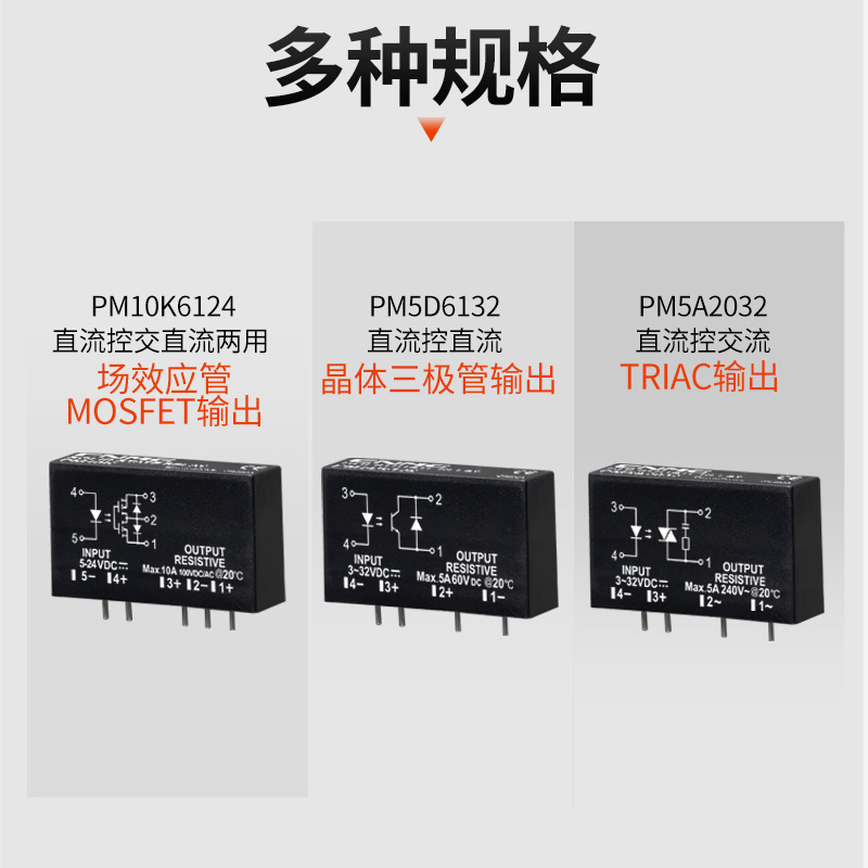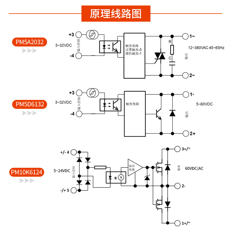 (DC controlled DC 5A)PM5D6132 (DC controlled AC zero-crossing trigger) PM5A2032 (DC controlled AC random trigger) PM5A2132