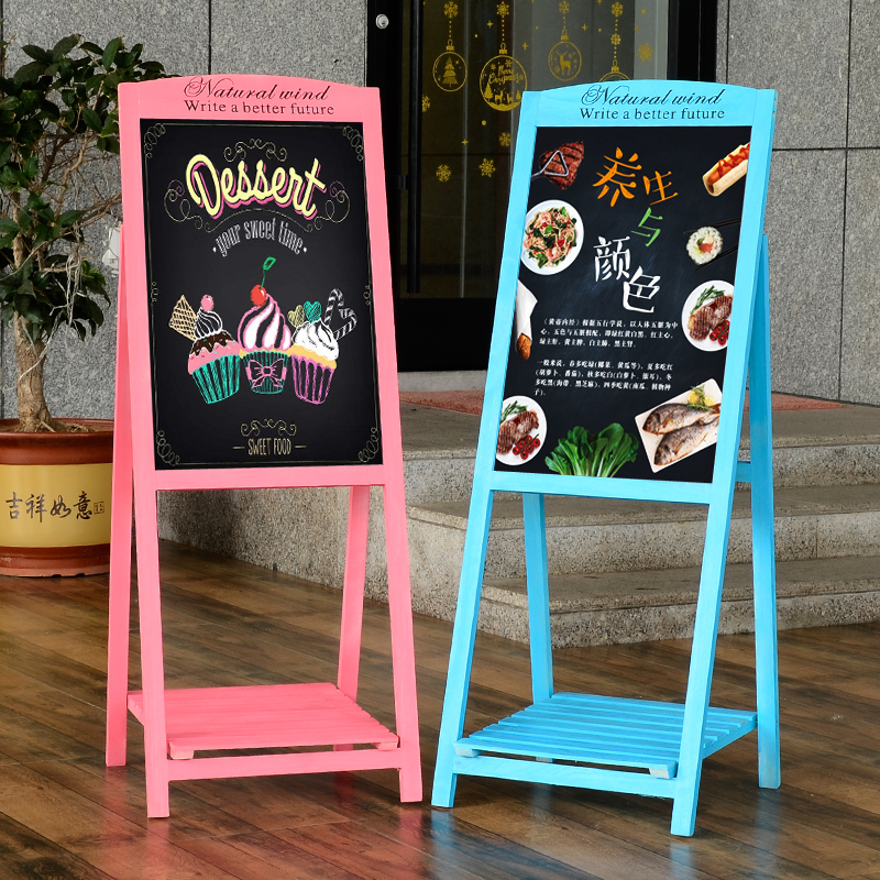 Creative wooden retro blackboard promotion vertical billboard display board Bracket flower rack Old floor small blackboard Shop advertising board Fluorescent board Coffee promotion dining room message board