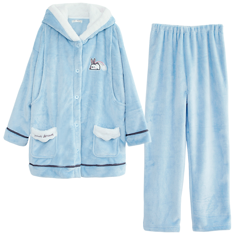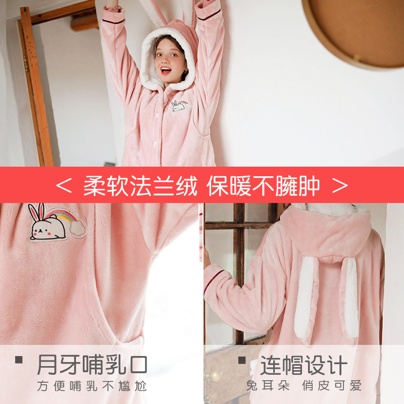 Pregnant women's pajamas autumn and winter coral fleece postpartum nursing clothing monthly clothing winter warm padded plus velvet nursing home clothing