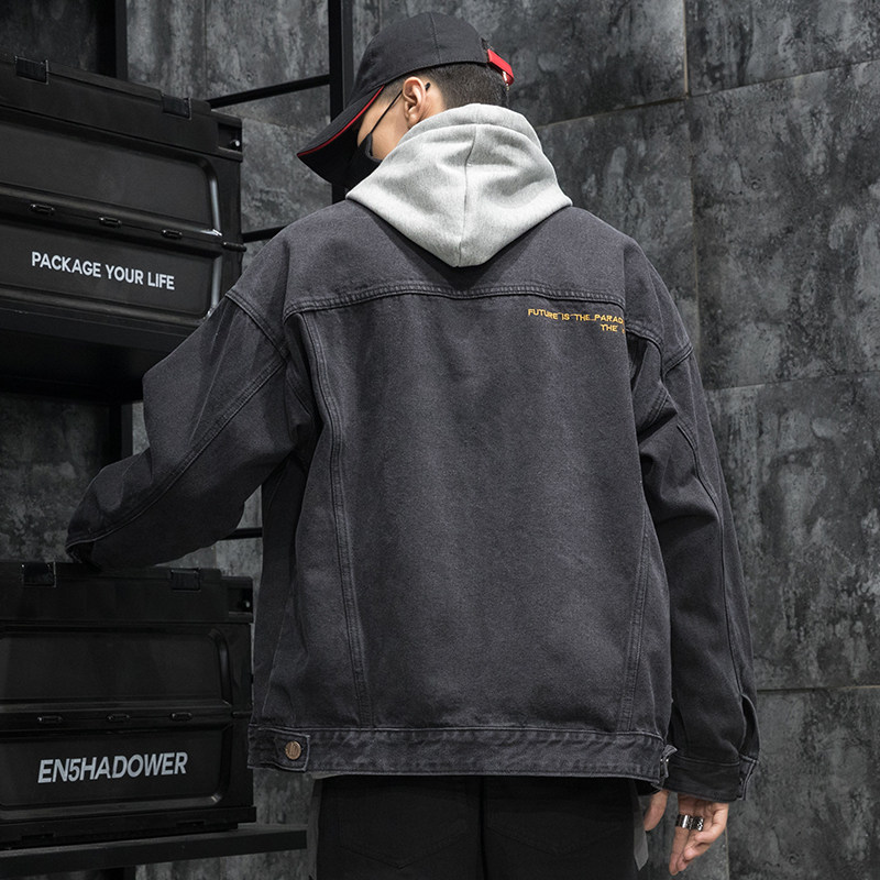 Spring and Autumn fashion brand black denim jacket men's loose fat plus size fat street trend casual tooling jacket