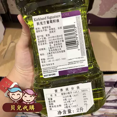 Shanghai costcoKIRKLAND Cochran American grape seed oil for Chinese cooking 2 liters