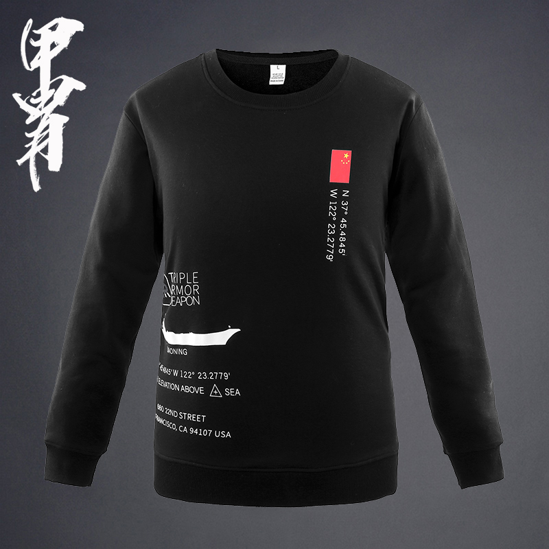 A navy 70th anniversary Liaoning Ship theme military fan sweater round neck thick cotton T flag version