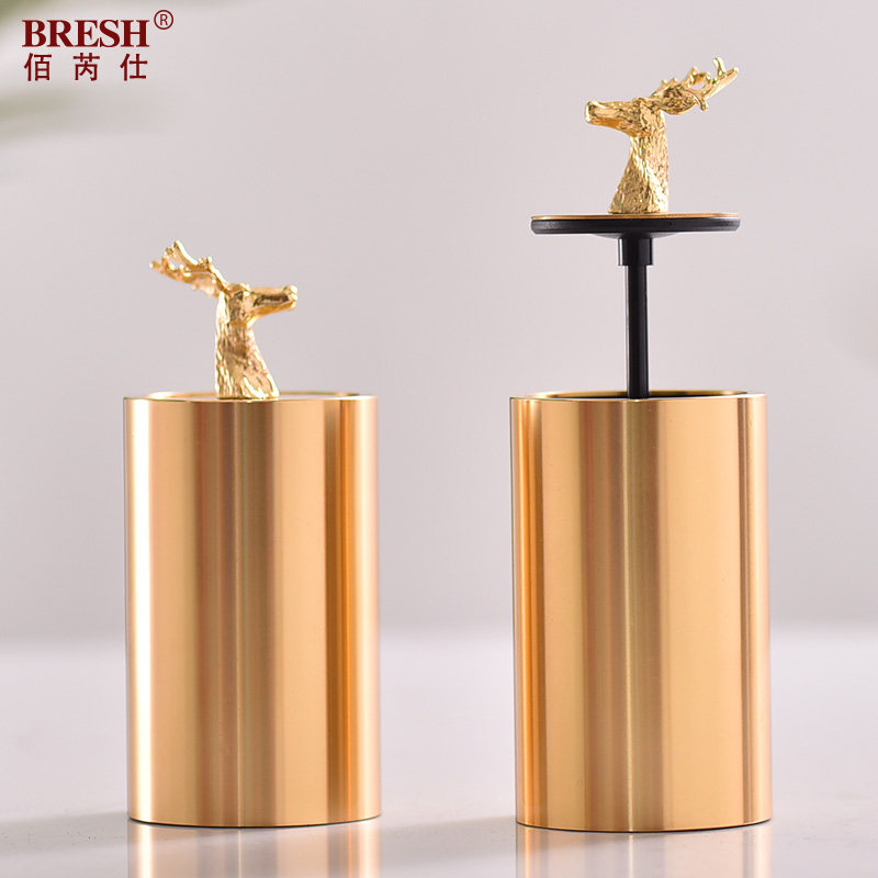 Light Extravagant Deer Head Cover Toothpick Cylinder Press-Pressure Toothpick Box Home Creative Table Pendulum