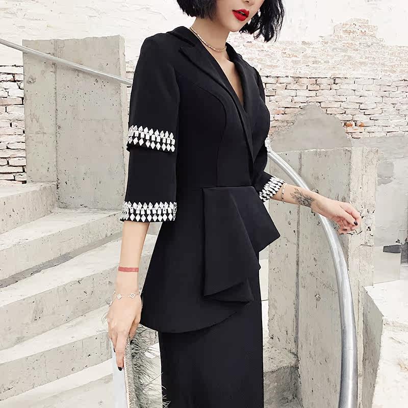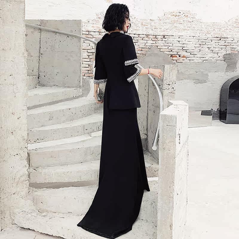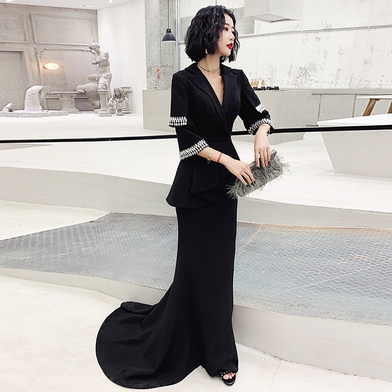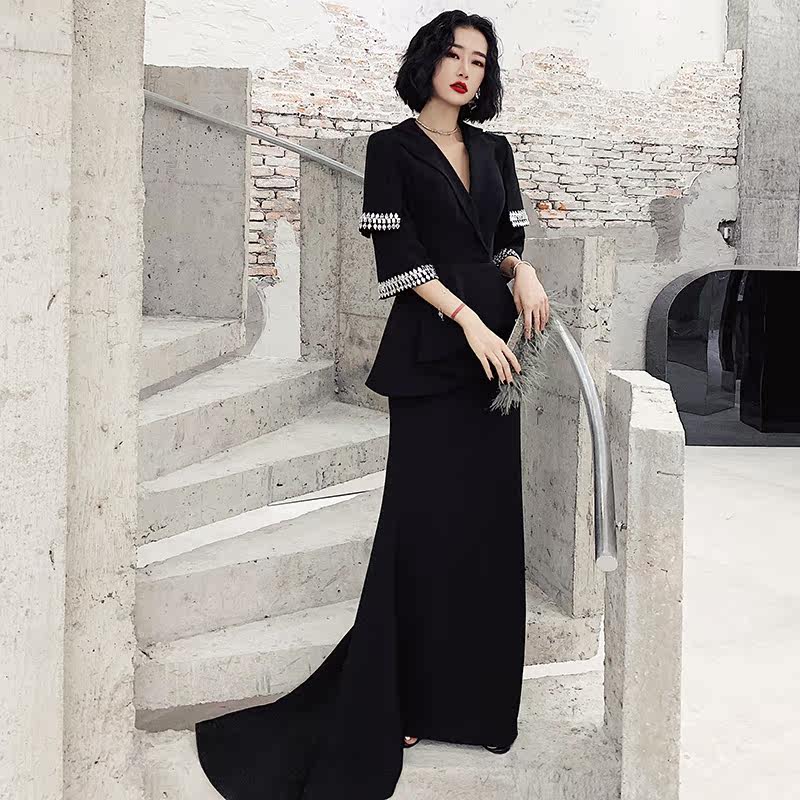 High-end banquet evening dress female 2020 new temperament noble elegant black long version of the annual meeting host dress skirt