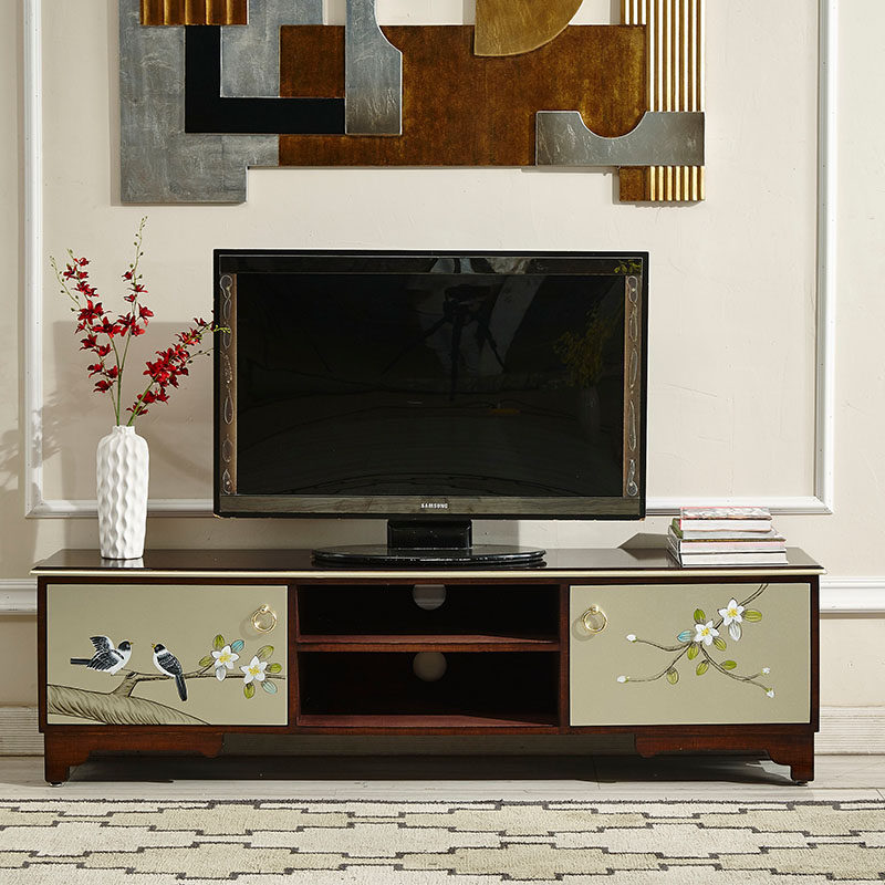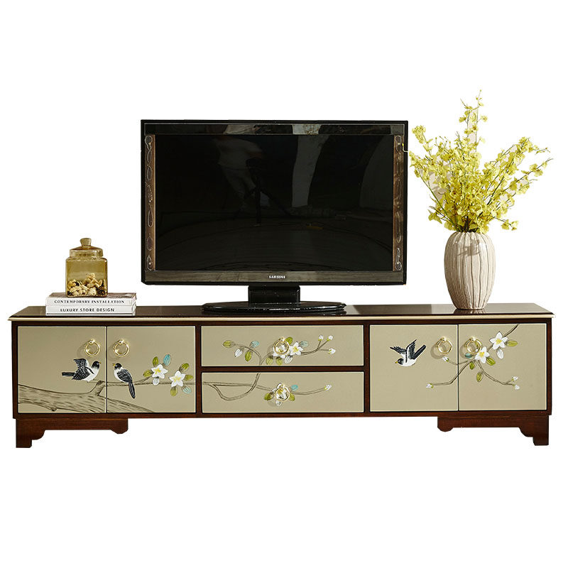 New Chinese solid wood living room TV cabinet Modern colour drawing short cabinet Tea Table Bedroom Home small family Type TV and TV cabinet Composition
