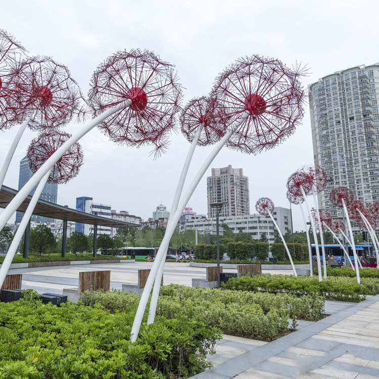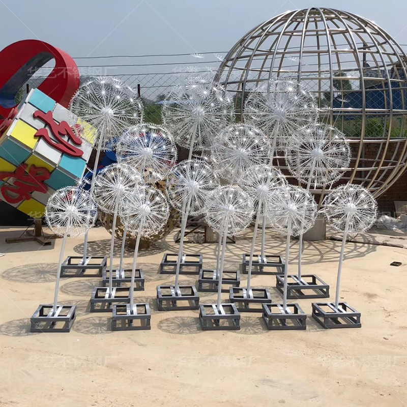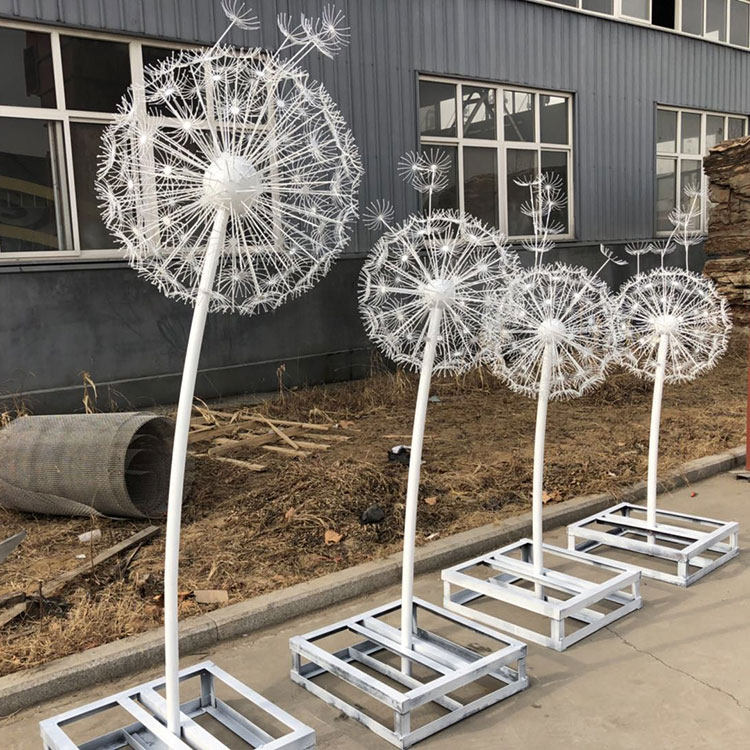 Custom wrought iron stainless steel dandelion sculpture outdoor lawn green garden landscape dandelion light flower ball