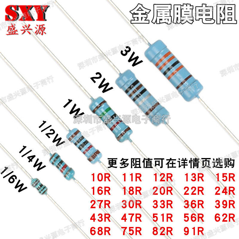 1 6W1 6W1 4W1 2W1W2W3W1 % of metal film resistance 10K12K20K24K47K51K68K75K82K91K