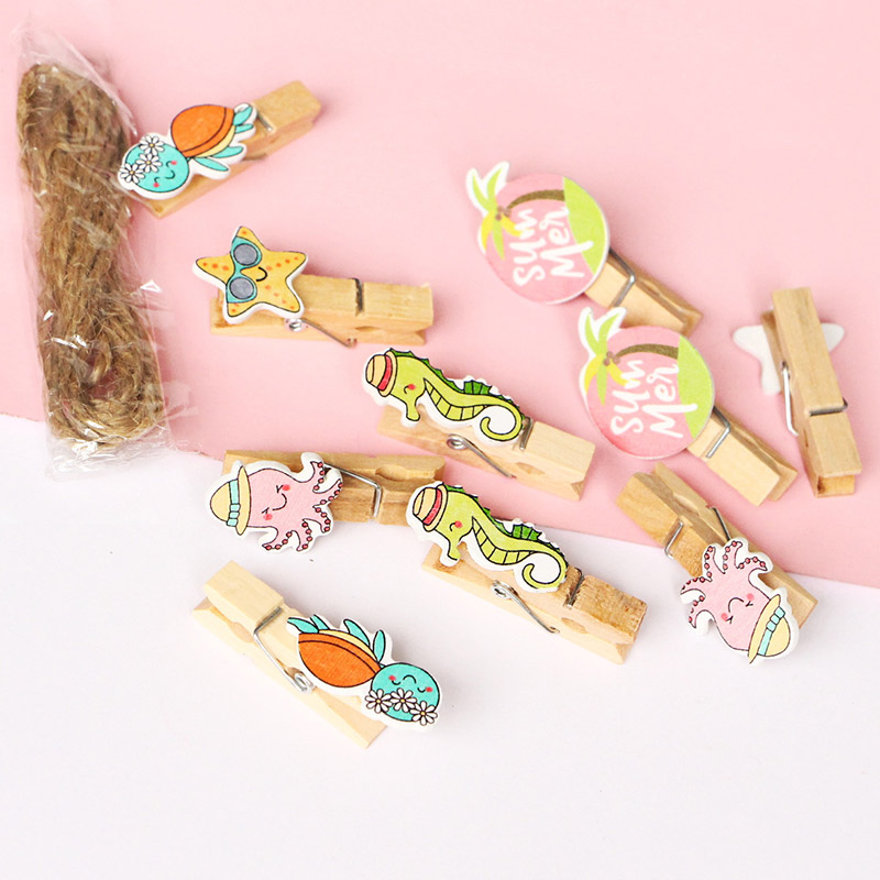 Seahorse wood clip cartoon marine animal series photo clip hemp rope ins net red photo props decoration photo clip