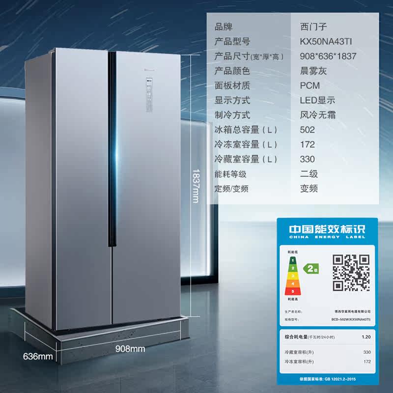 Siemens 502 liters variable frequency double pair open door Home Embedded air-cooled energy saving big electric refrigerator KX50NA43TI