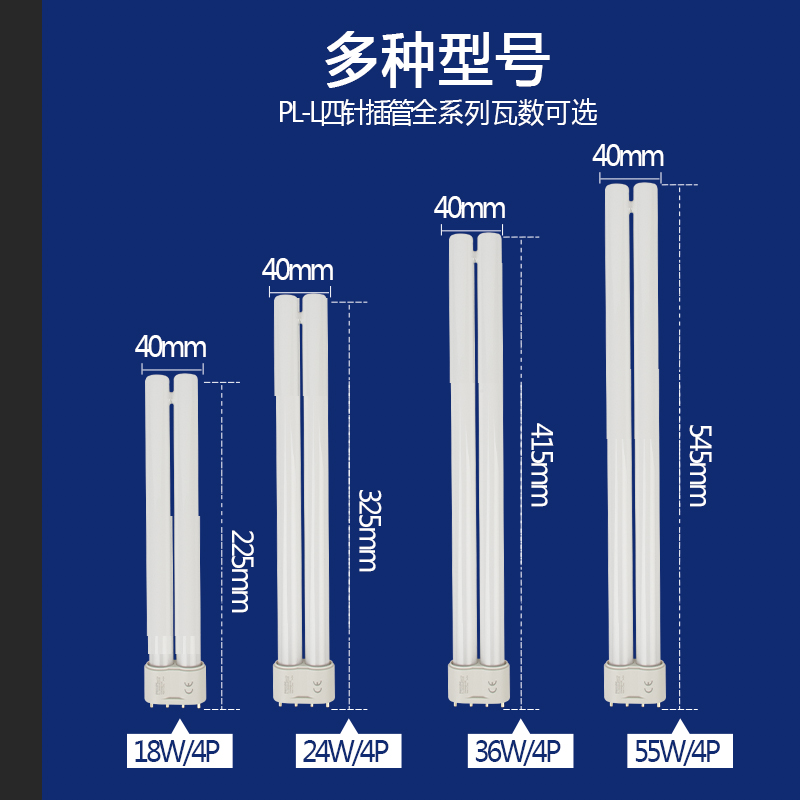36W four-pin (white light 6500K 865) two sets 24W four-pin (neutral light 4000K 840) two sets PL-S (11W four-pin) lamp tube