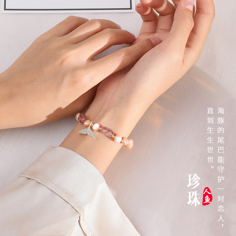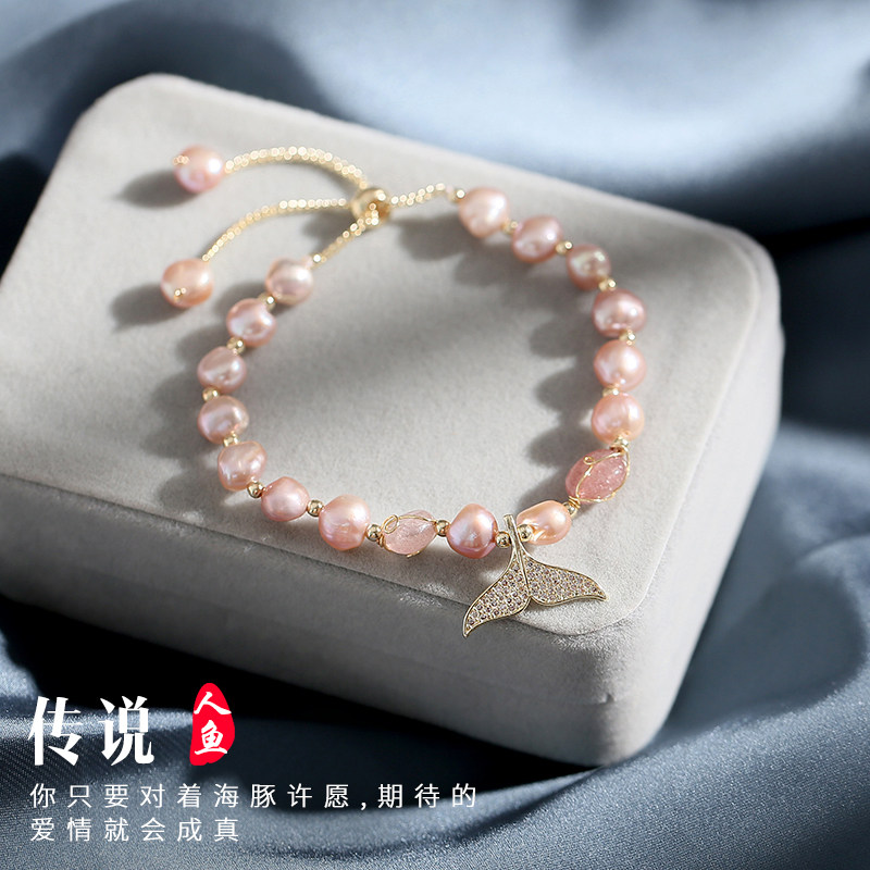 Natural freshwater pearl bracelet female Baroque jewelry trendy ins niche design fish tail trick peach blossom light luxury bracelet