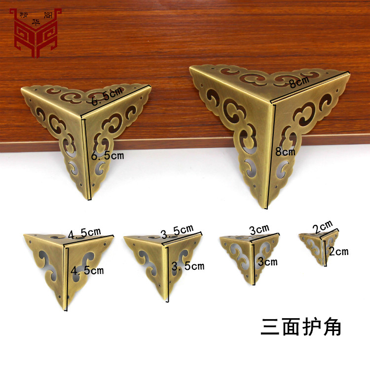 Chinese imitation antique box wrap corner copper corner flower pure copper decorative corner wooden case metal protective corner Zhangwood case Three-sided corner guard
