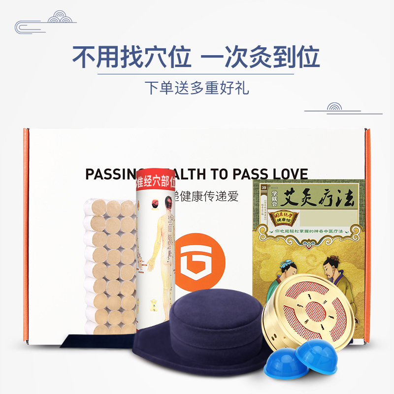 Smokeless moxibustion (smokeless set 1 copper box 54 moxa column 2 small moxibustion pot meridian diagram moxibustion book gift box)
