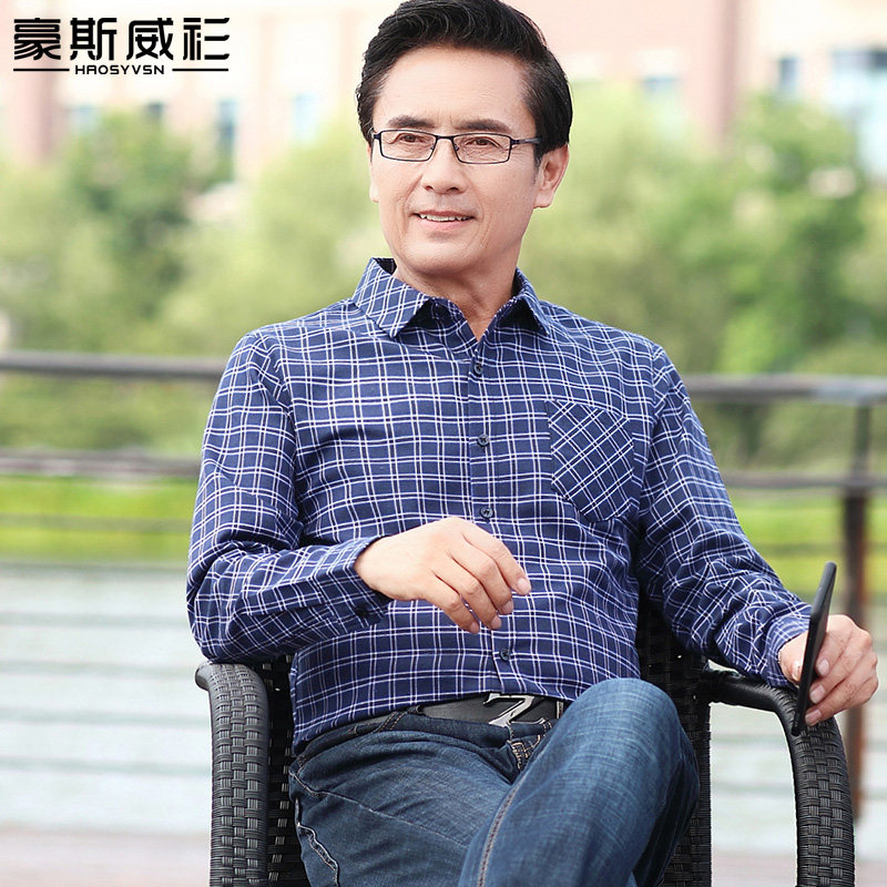 2021 new spring inch shirt middle-aged men's long-sleeved shirt dad spring and autumn 40-year-old 50-year-old shirt for the elderly