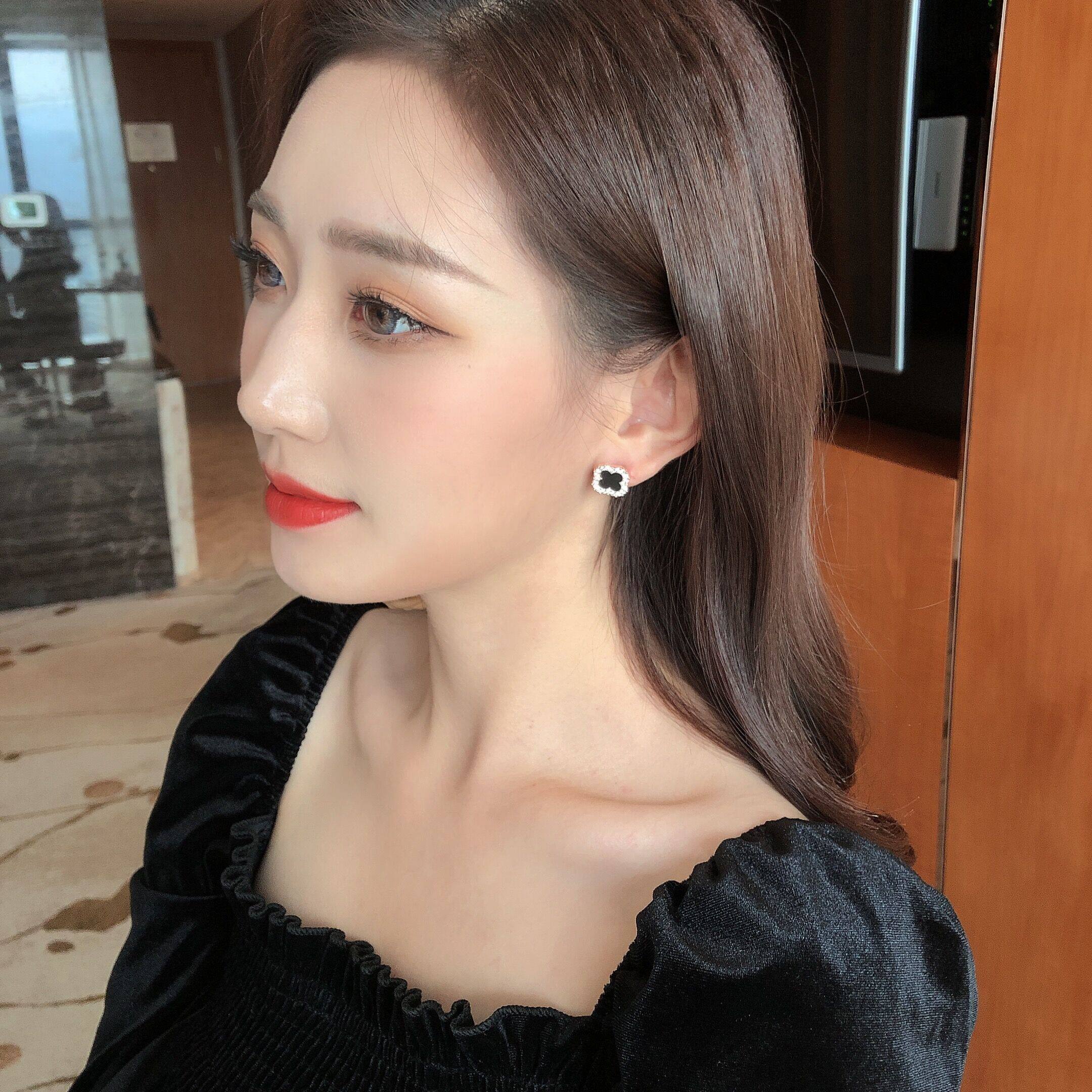 Diamond-studded four-leaf clover earrings for women 18k rose gold 925 sterling silver anti-allergic net red 2021 new trendy earrings earrings