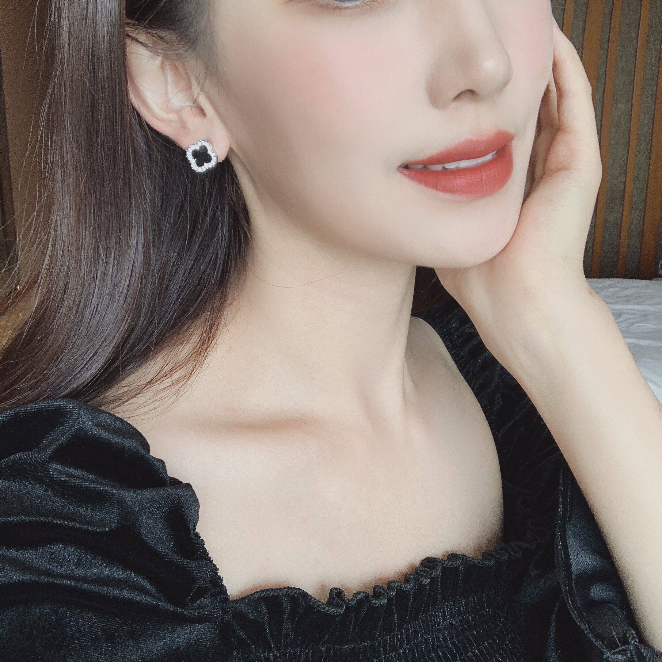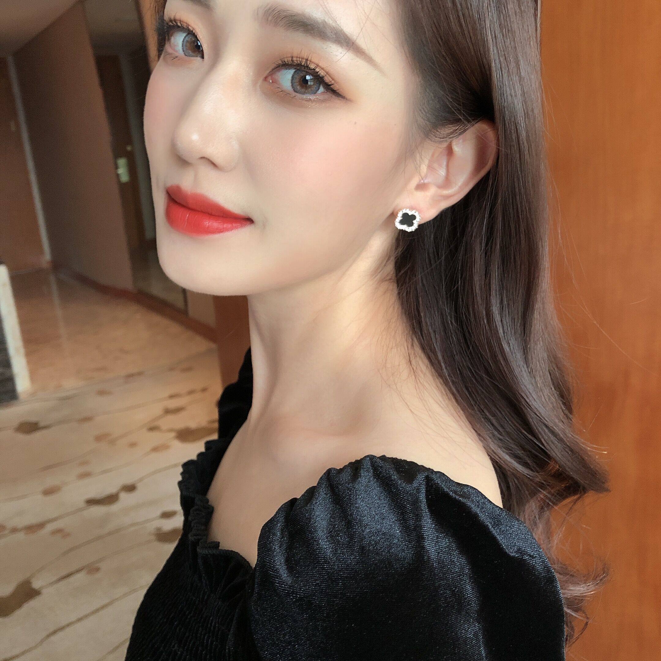 Silver orange rose red pink red lotus root watermelon red wine red ginger yellow bright yellow fluorescent yellow rose gold lucky four-leaf clover silver four-leaf clover lucky four-leaf clover rhombus earrings lucky four-leaf clover