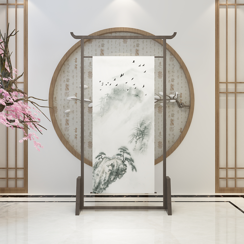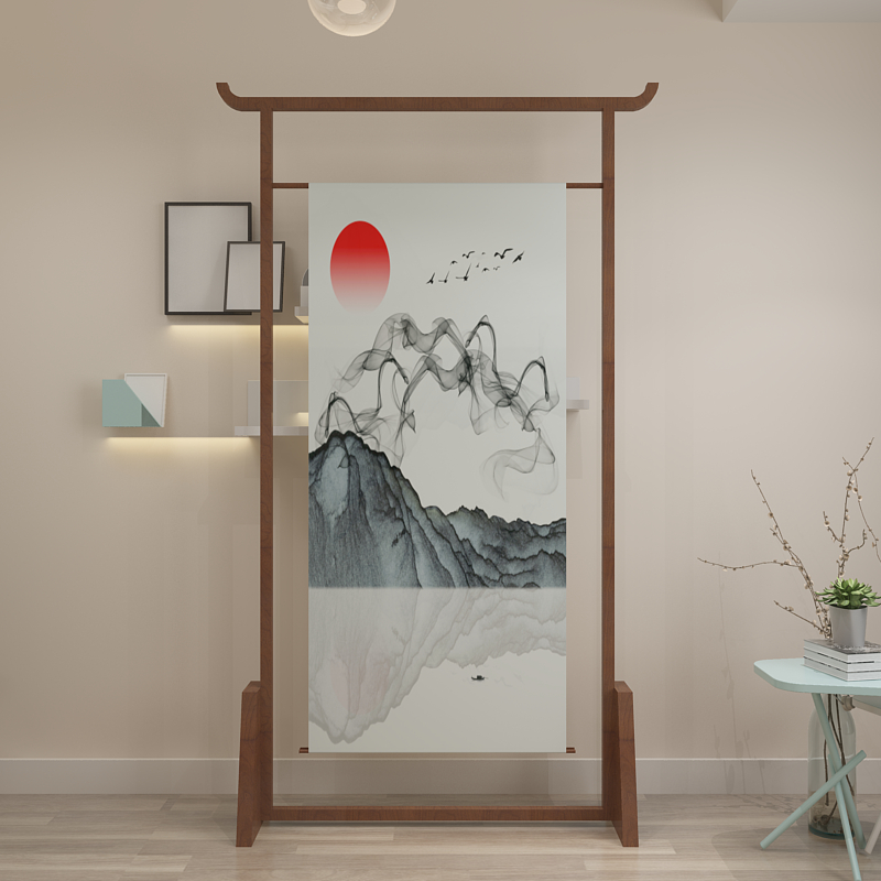 Chinese style screen partition living room hotel solid wood decoration semi-overdraft yarn mobile landscape calligraphy and painting hanging curtain type entrance to the house screen