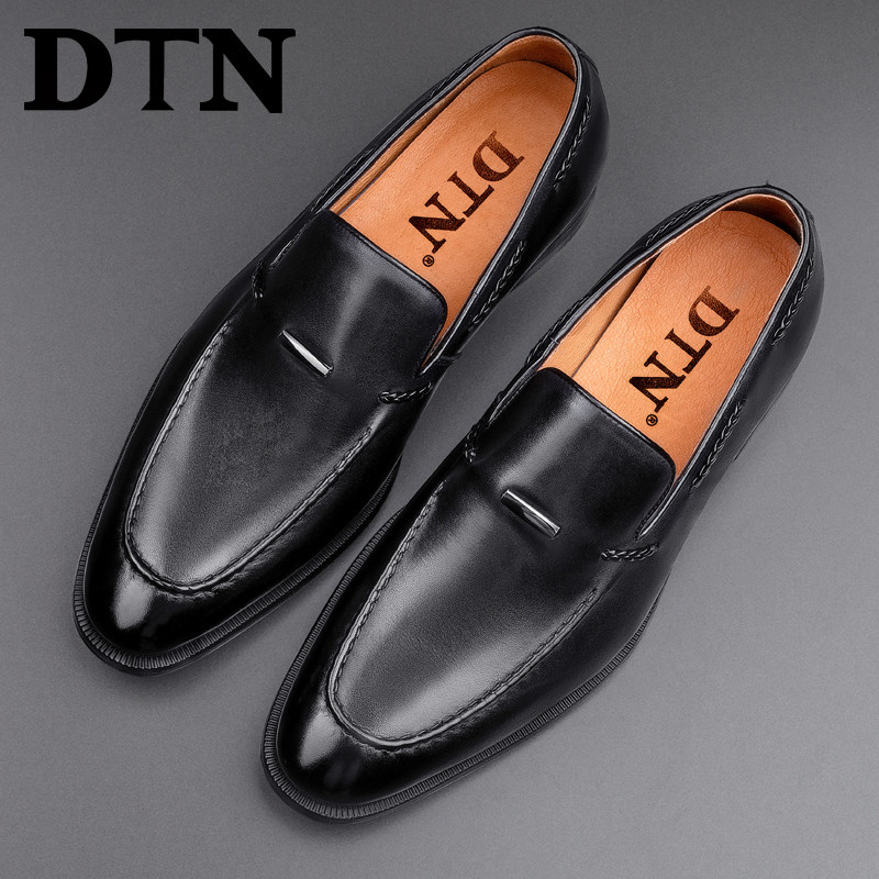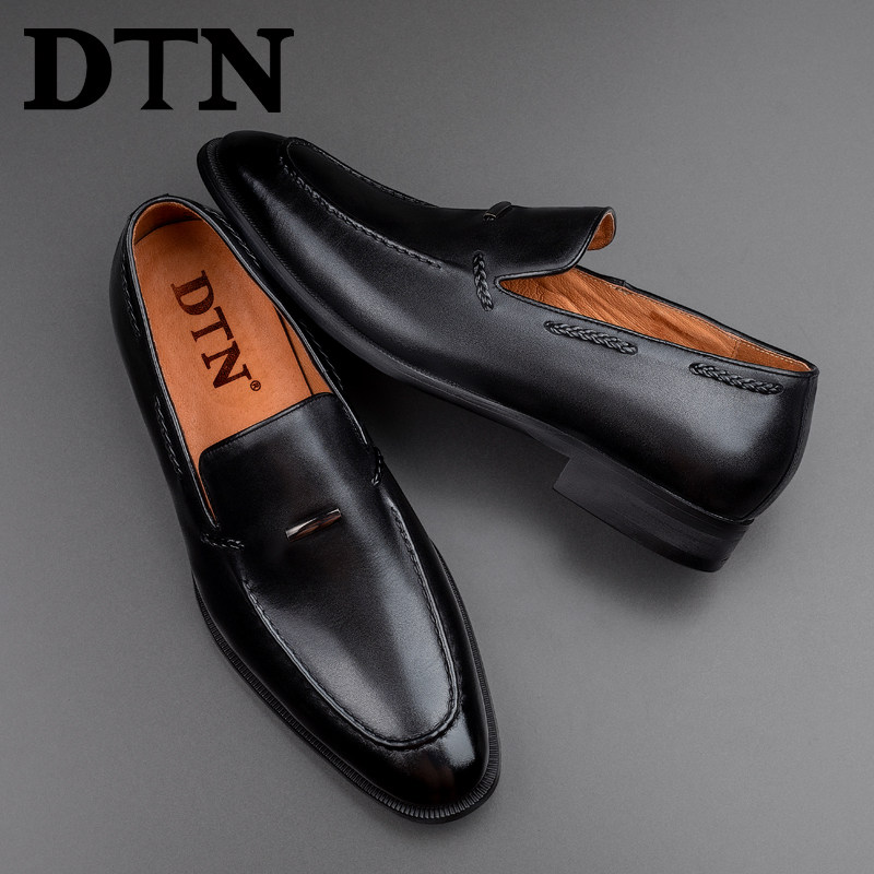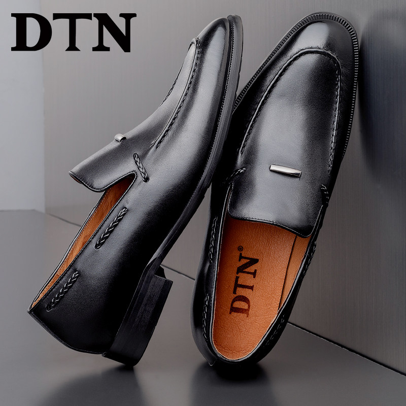 DTN men's formal leather shoes men's slip-on black high-quality leather business casual men's shoes breathable England
