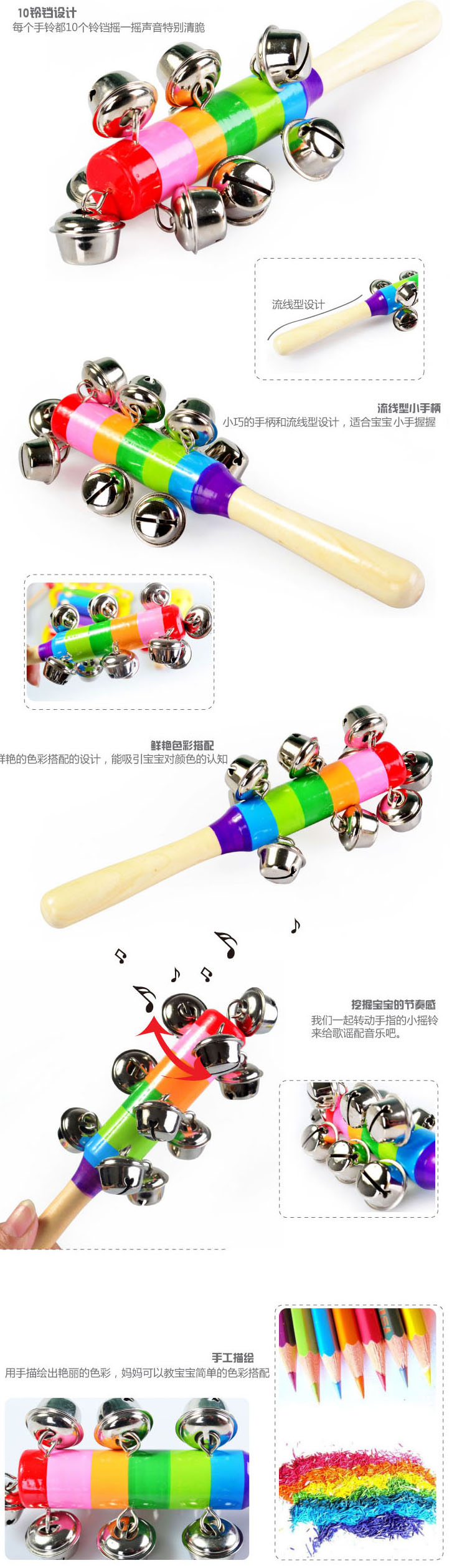 Wooden wooden hand rocking bell toy hands with baby rocking the bells and gripping the bells strings Alarm Puzzle can bite-Taobao