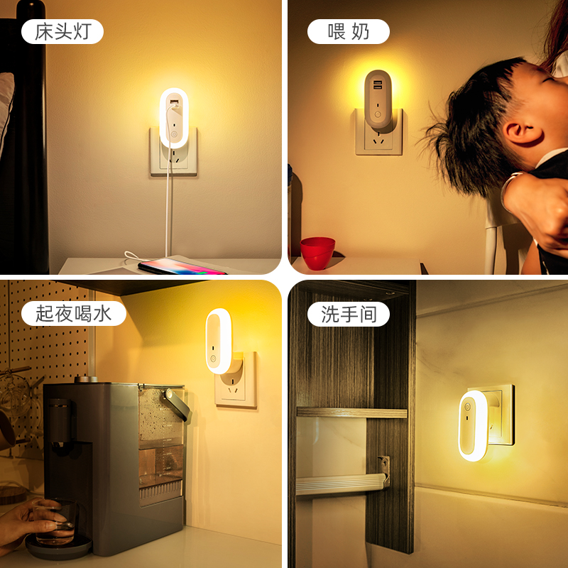 AWKICI plug-in electric remote control small night light led bed headlights Moonlight breast-feeding baby sleep wall lamp USB charger plug-in-style student sleeping room Dormitory Table Light With Switch Mini Bedroom Light