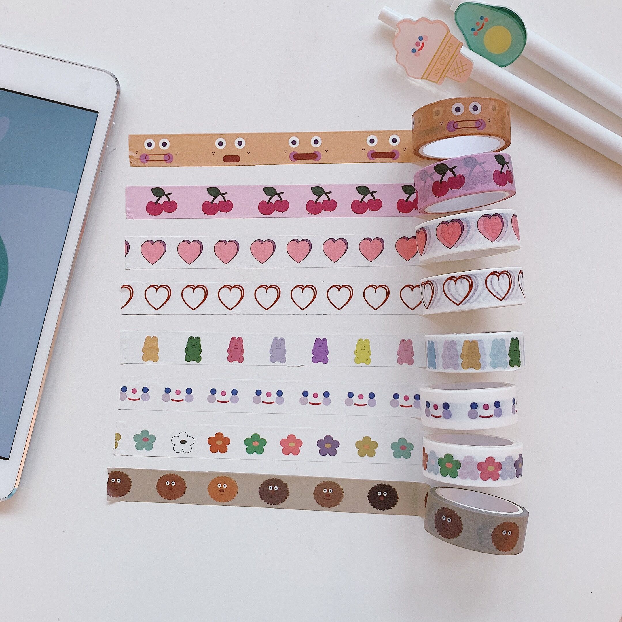 Girl heart screening room Korea ins Cute smiley tape Student cartoon hand account DIY decorative stickers and paper