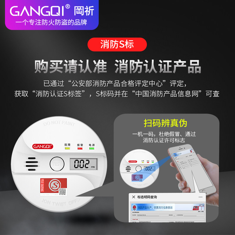 Gangqi household carbon monoxide alarm honeycomb coal flue gas co detector combustible gas leak detector