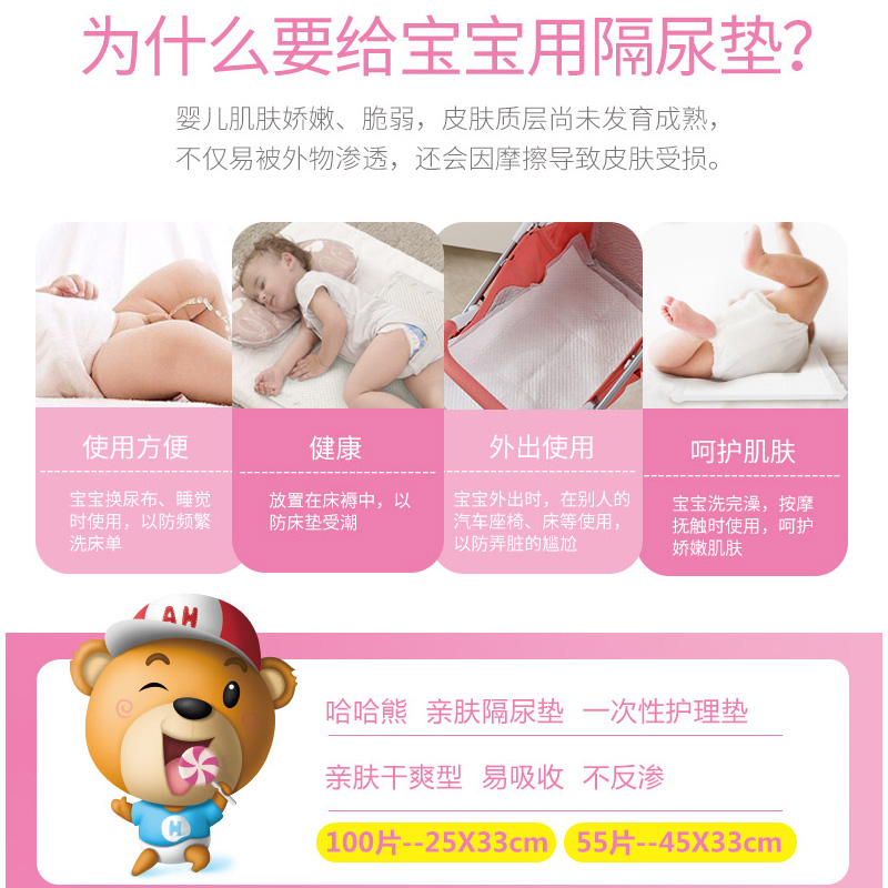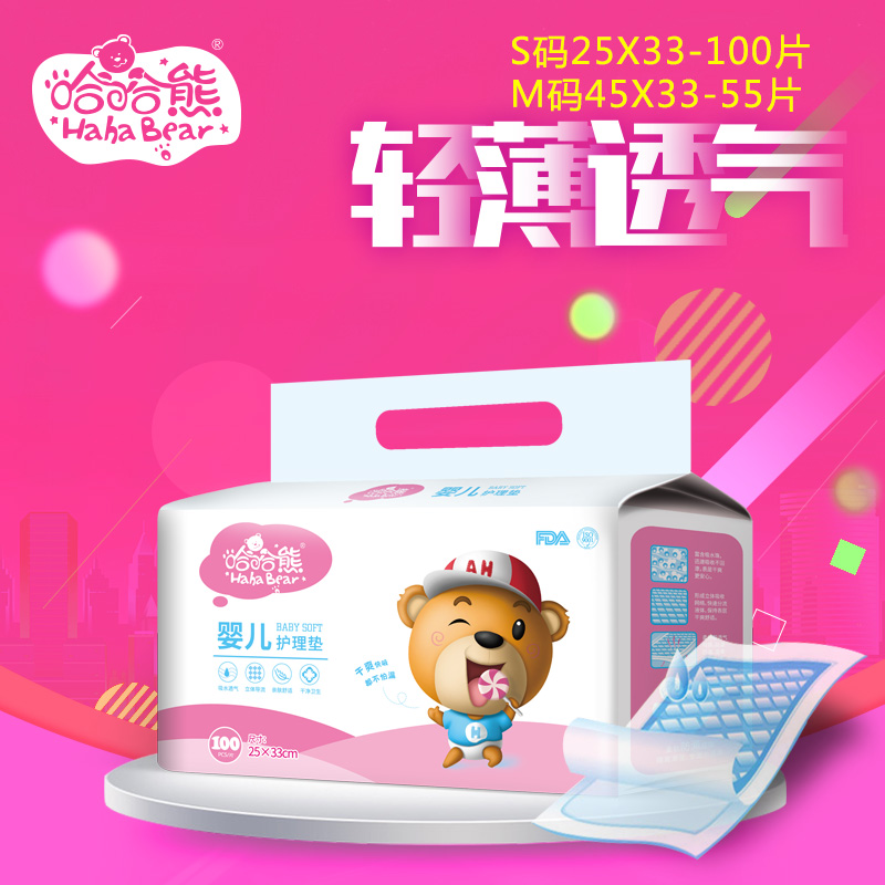 Haha Bear newborn baby isolation pad Baby care pad waterproof and breathable disposable mattress diapers M100 L55
