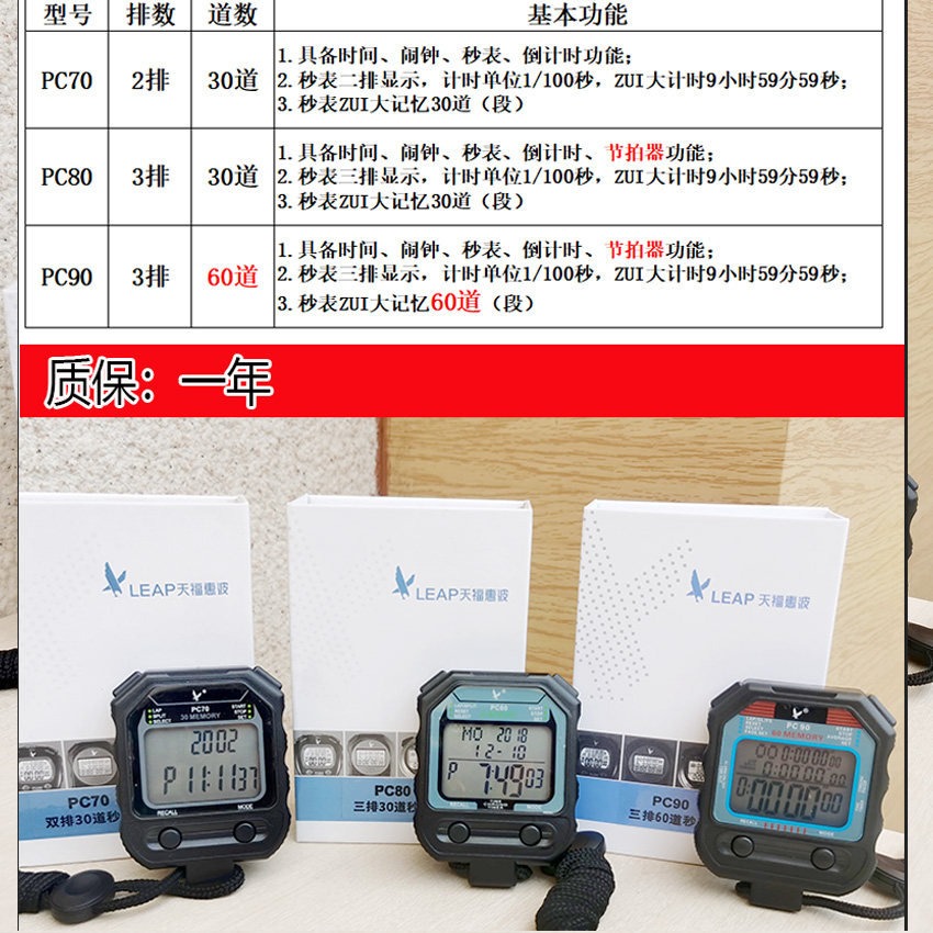 Seconds Meter Timer Athletics PC80 Waterproof 3-row 30-meter Memory stopwatch Electronic calculator Run Table