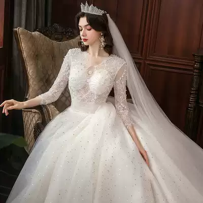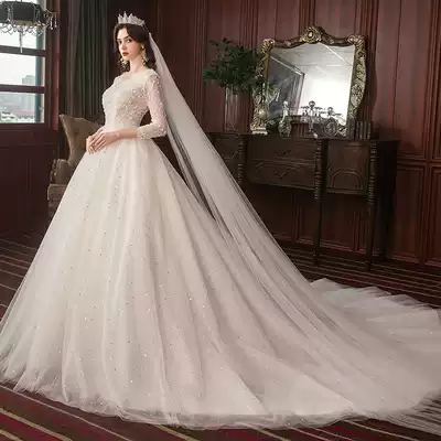 Long sleeve main wedding dress 2021 New Dream bride Super fairy simple Korean light Hepburn tail Spring