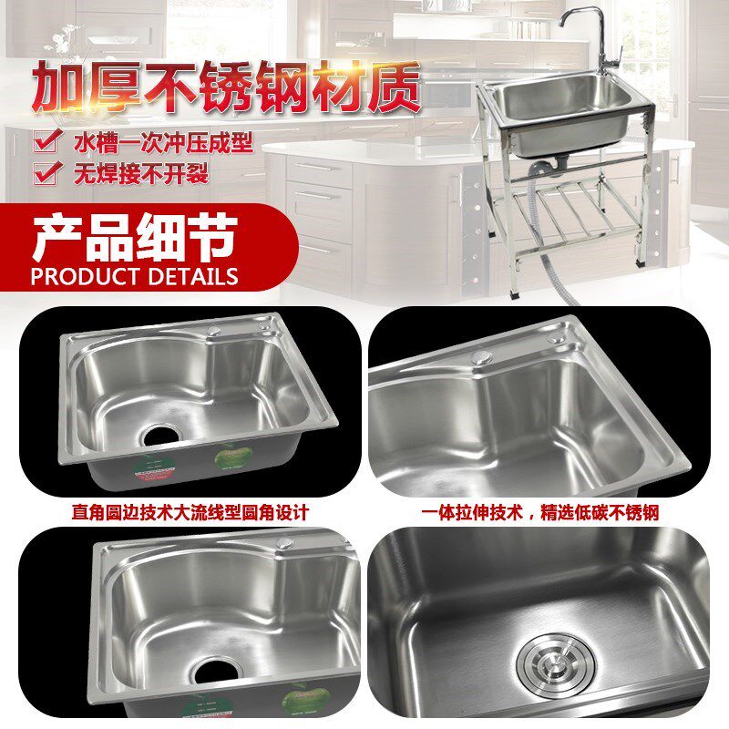 Rack Thickened Dishwashing Pool 304 Single Groove Commercial Kitchen Stainless Steel Sink With Bracket Integrated Household Water Bucket-Taobao